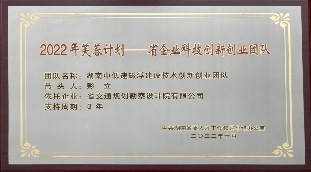 于2022年入選“芙蓉計劃”-省企業科技創新創業團隊支持項目,主要研究方向:中低速磁浮選線定線關鍵技術,中低速磁浮軌道系統關鍵技術,磁浮橋梁體系車橋耦合分析及力學性能關鍵技術,中低速磁浮隧道關鍵技術。團隊是湖南省首個磁浮建設技術團隊,依托鳳凰磁浮文化旅游工程及長沙磁浮東延線接入T3航站樓工程,開展了復雜地質條件下工程選線、磁浮軌道接頭處理方案及軌排施工進度控制、梁型結構優化及列車-橋梁耦合動力響應分析等一系列關鍵技術研究,旨在為磁浮交通工程建設的發展提供強有力的技術支撐與保障,主要攻克面向工程應用的磁浮工程建筑關鍵技術和基于全壽命周期理論的磁浮智慧運維技術。