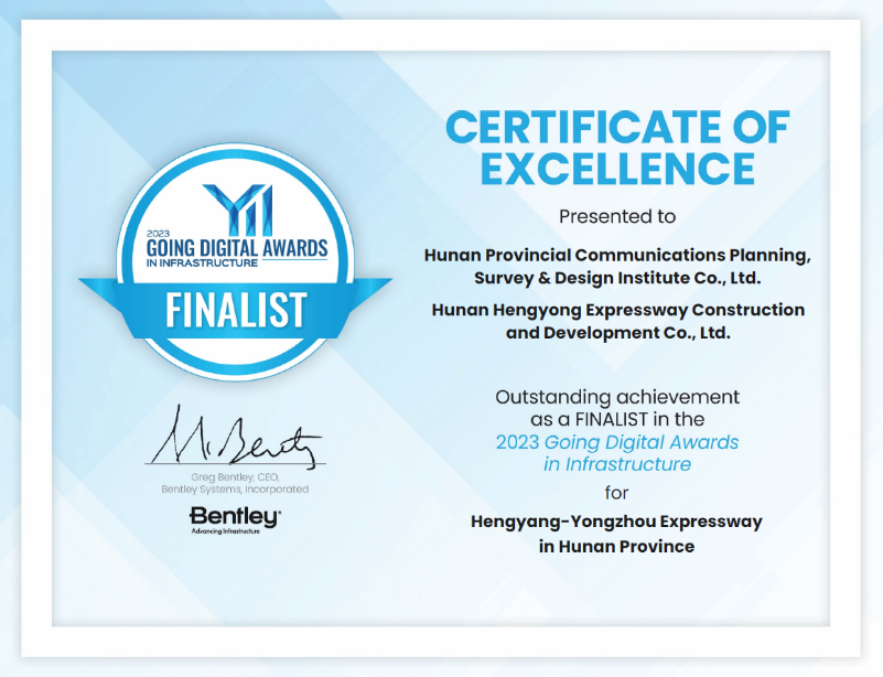 近日,在2023縱覽全球基礎設施大會上,由湖南省交通規劃勘察設計院有限公司與湖南省衡永高速公路建設開發有限公司共同申報的“衡陽至永州高速公路BIM解決方案”攬獲了Bentley 2023年全球基礎設施年度光輝大獎賽決賽突出成就獎。該項目也是大賽“公路和高速公路”類別中唯一...